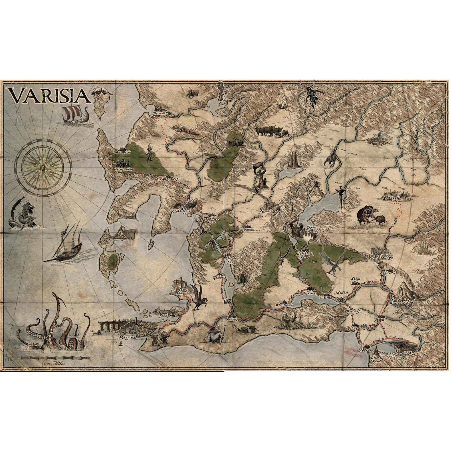 Varisia is a true frontier, stretching from the Varisian Gulf in the west to the sheer peaks of the Mindspin and Kodar Mountains in the east. The space between encompasses all manner of terrain – sprawling plains, dense forests, burning badlands, and mysterious swamps. The land remains relatively untouched by the lumberer’s axe or fisher’s trawl, and its wild creatures remain varied and plentiful – and sometimes monstrous.